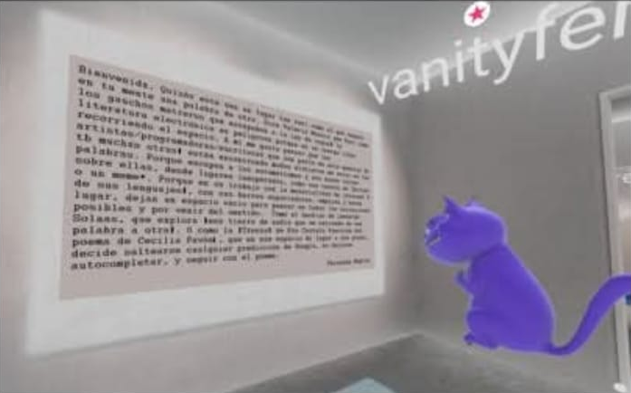 Bienvenidx. Quizás este sea un lugar tan real como el que separa en tu mente una palabra de otra. Dice Valeria Mussio que –así como los gauchos matreros que escapaban a la ley de vagos– la literatura electrónica es peligrosa porque es un cuerpo libre recorriendo el espacio. A mí me gusta pensar que lxs artistas/programadorxs/escritorxs que son parte de esta muestra –y tb muchxs otrxs– están encontrando modos distintos de estar en las palabras. Porque escapan a los automatismos y nos hacen volver sobre ellas, desde lugares inesperados, como una cuenta de Twitter o un meme*. Porque en su trabajo con la materialidad de internet –de sus lenguajes–, con sus barras espaciadoras, empujan y hacen lugar, dejan un espacio vacío para pensar en todas las variaciones posibles y por venir del sentido. Como el hechizo de Leonardo Solaas, que explora “esa tierra de nadie que se extiende de una palabra a otra”. O como la “Trenza” de Eva Costelo –versión del poema de Cecilia Pavón-, que en ese espacio da lugar a una pausa, decide saltearse cualquier predicción de Google, no dejarse autocompletar, y seguir con el poema.